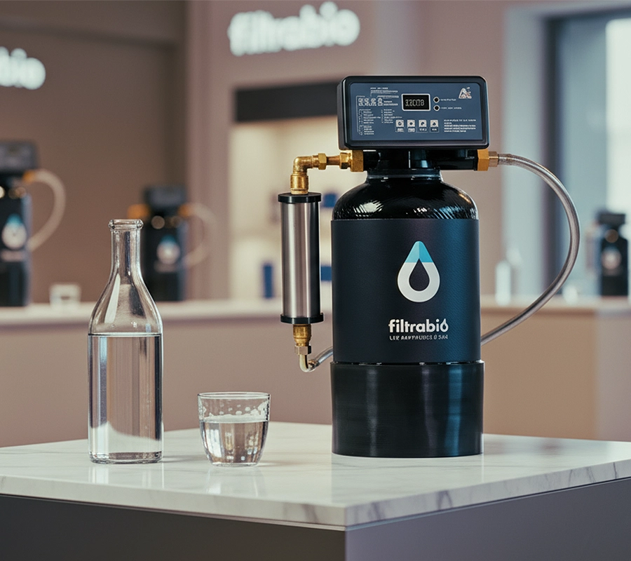 Si vous voulez une eau de boisson de haute qualité pour votre famille, naturellement minéralisée et avec une forte réduction des contaminants, l’adoucisseur seul ne suffit pas. Découvrez comment Filtrabio propose une alternative complète : filtration avancée des polluants + conservation des minéraux + dynamisation du calcaire, sans sel, sans rejet, avec une maintenance tous les 4 ans seulement.